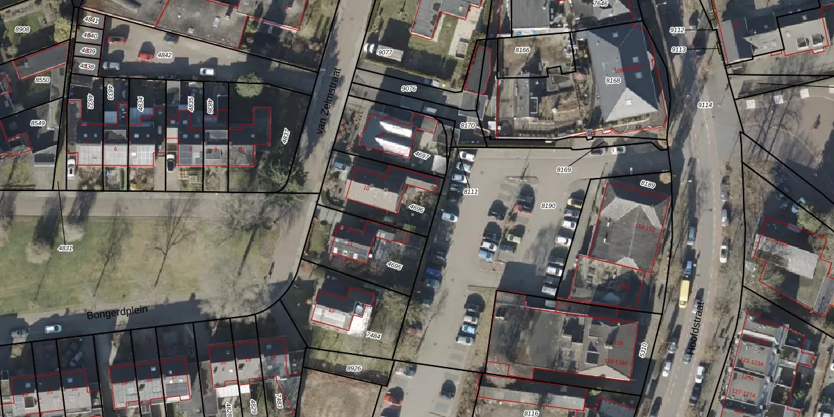 Gebruik de zoekbalk of klik op een perceel om informatie over het perceel te bekijken.