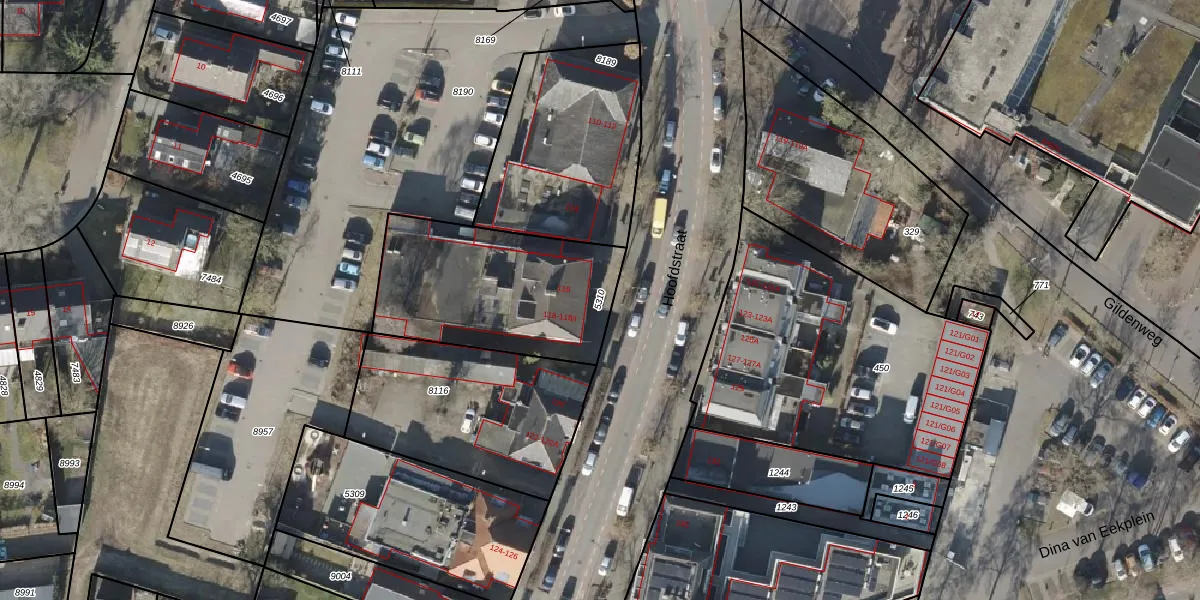 Gebruik de zoekbalk of klik op een perceel om informatie over het perceel te bekijken.