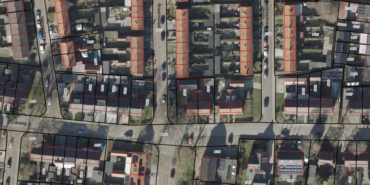 Gebruik de zoekbalk of klik op een perceel om informatie over het perceel te bekijken.