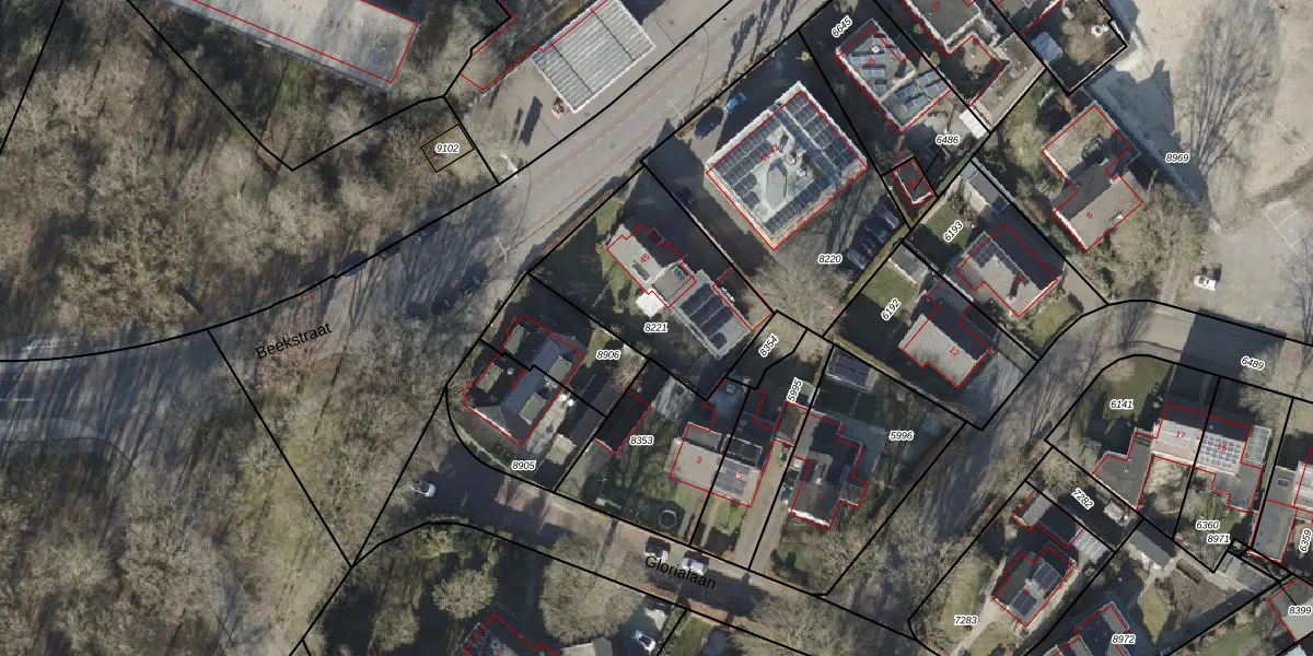 Gebruik de zoekbalk of klik op een perceel om informatie over het perceel te bekijken.