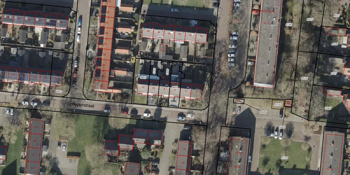 Gebruik de zoekbalk of klik op een perceel om informatie over het perceel te bekijken.