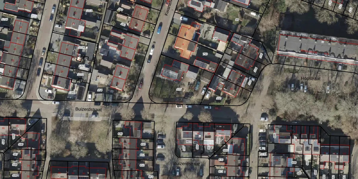 Gebruik de zoekbalk of klik op een perceel om informatie over het perceel te bekijken.