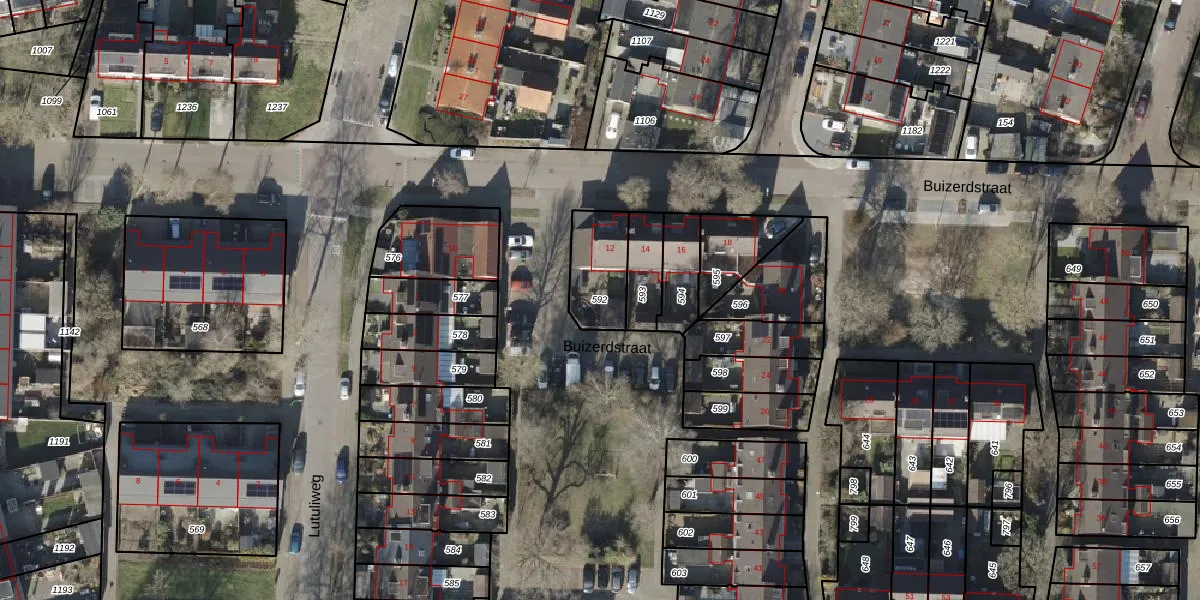 Gebruik de zoekbalk of klik op een perceel om informatie over het perceel te bekijken.