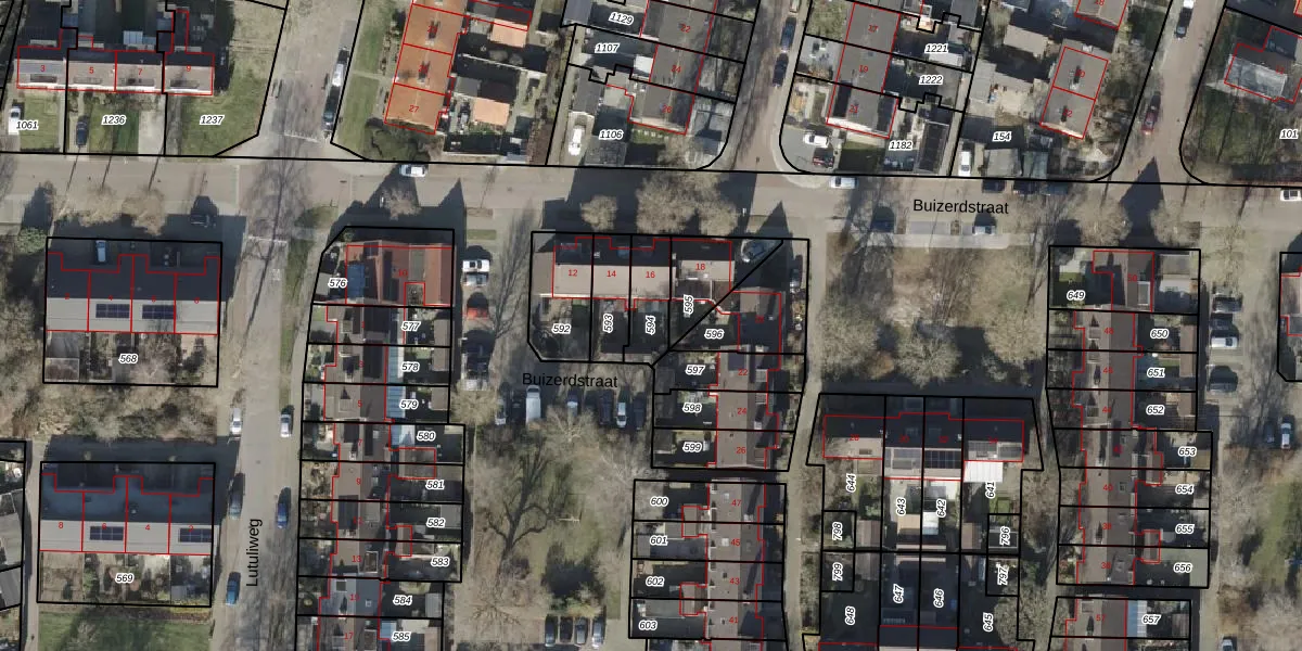 Gebruik de zoekbalk of klik op een perceel om informatie over het perceel te bekijken.