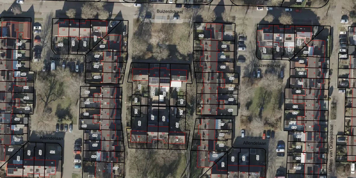 Gebruik de zoekbalk of klik op een perceel om informatie over het perceel te bekijken.
