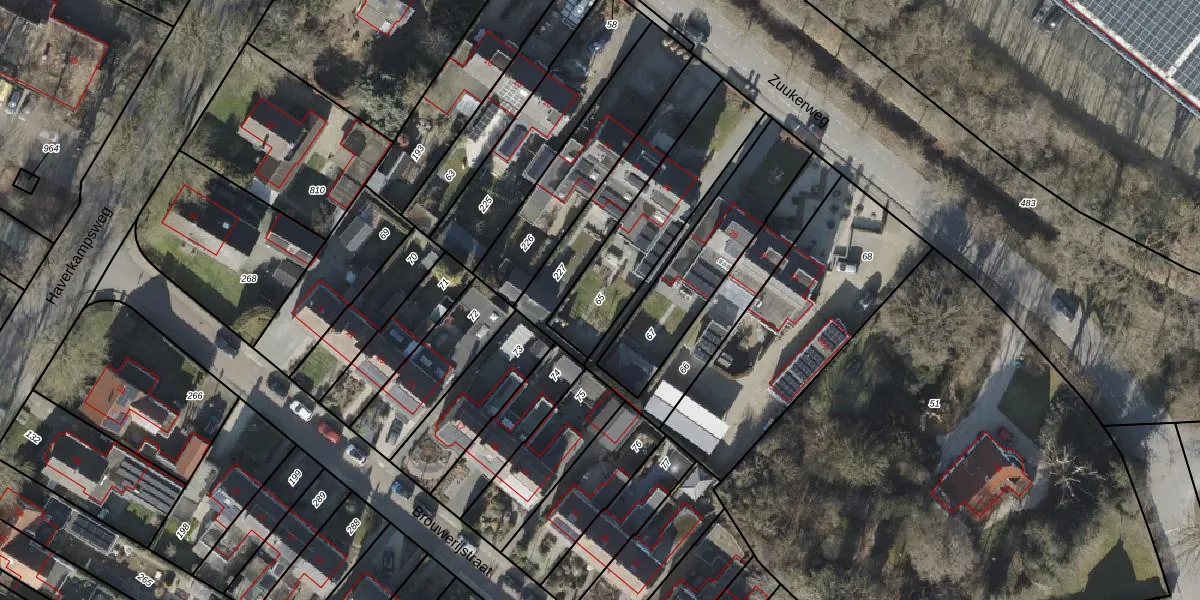 Gebruik de zoekbalk of klik op een perceel om informatie over het perceel te bekijken.