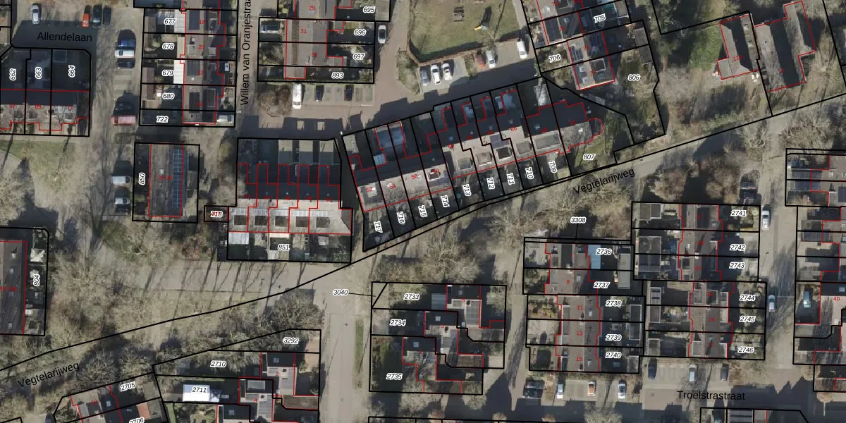 Gebruik de zoekbalk of klik op een perceel om informatie over het perceel te bekijken.