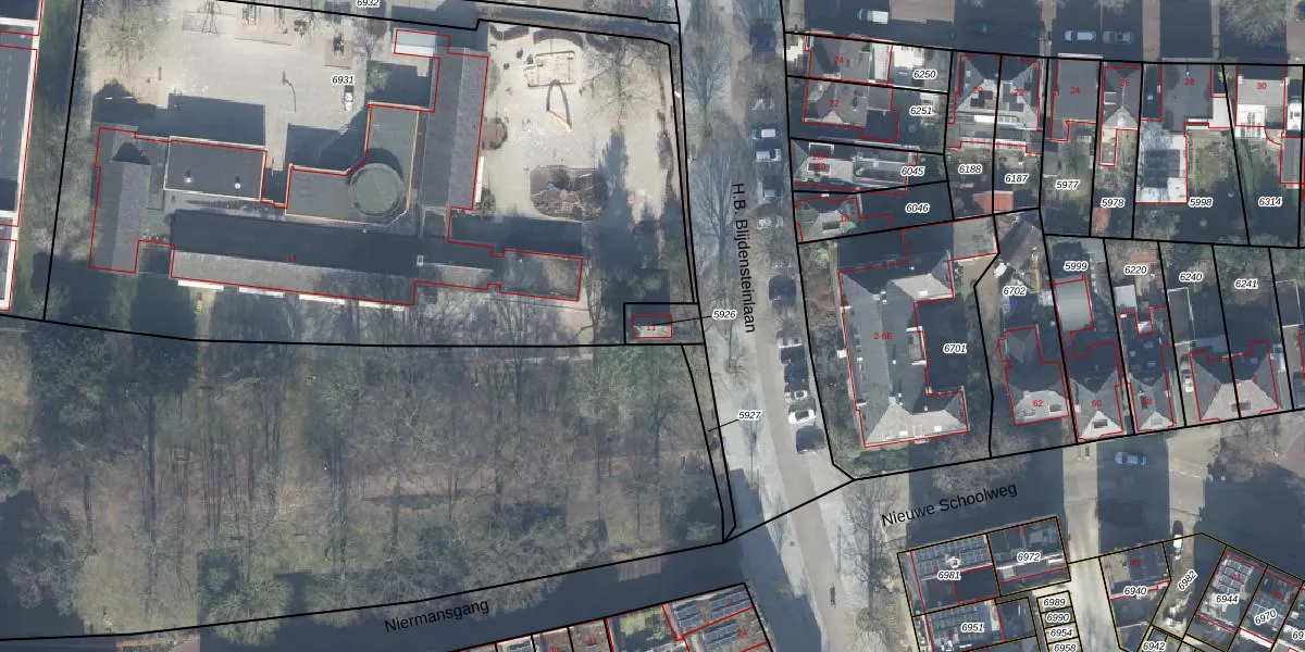 Gebruik de zoekbalk of klik op een perceel om informatie over het perceel te bekijken.