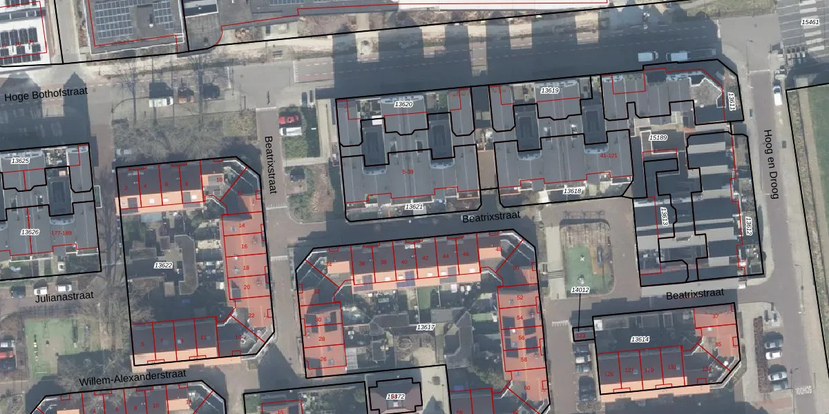 Gebruik de zoekbalk of klik op een perceel om informatie over het perceel te bekijken.