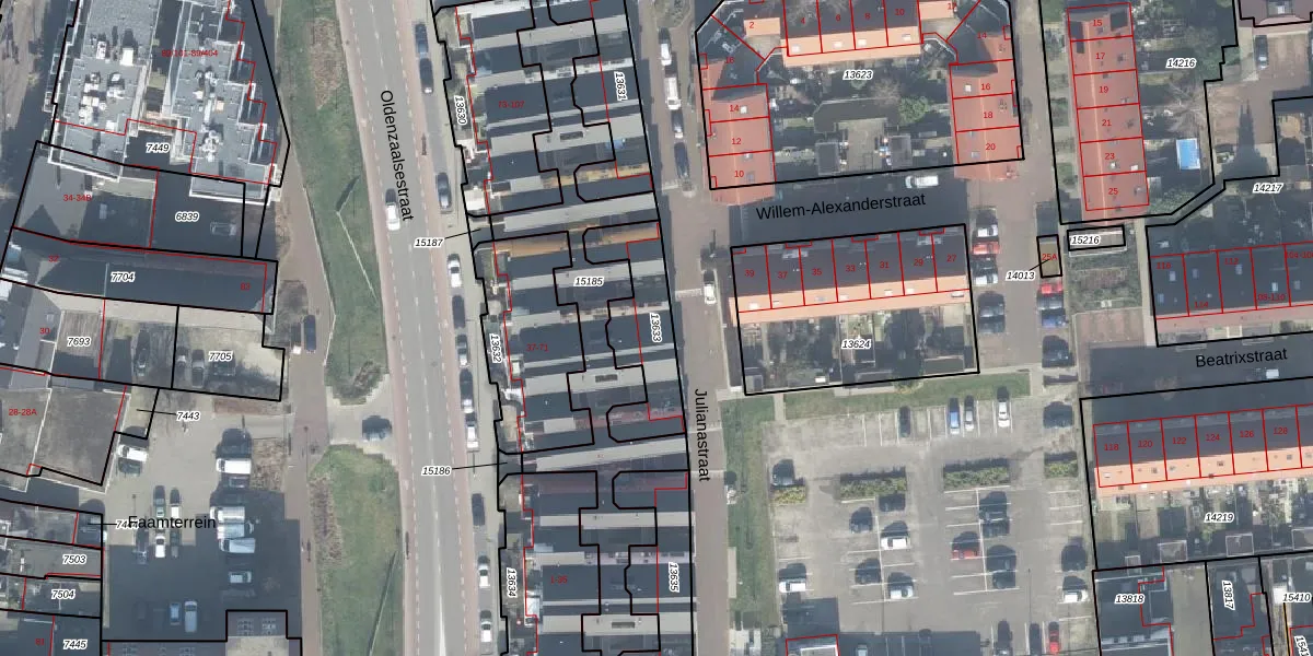 Gebruik de zoekbalk of klik op een perceel om informatie over het perceel te bekijken.