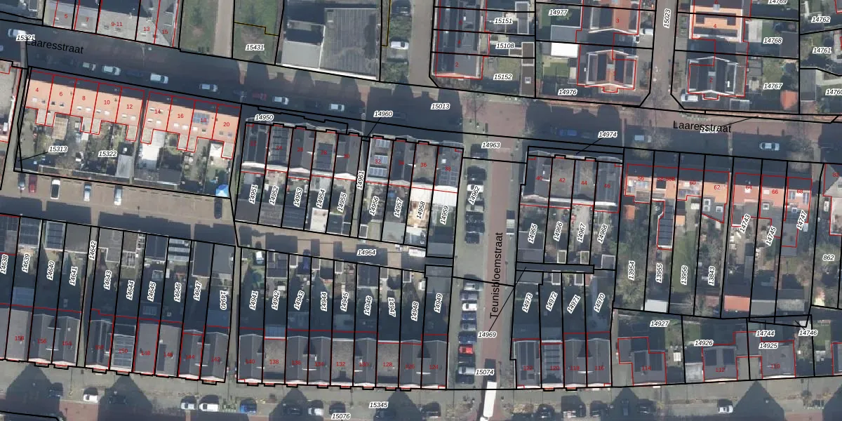 Gebruik de zoekbalk of klik op een perceel om informatie over het perceel te bekijken.