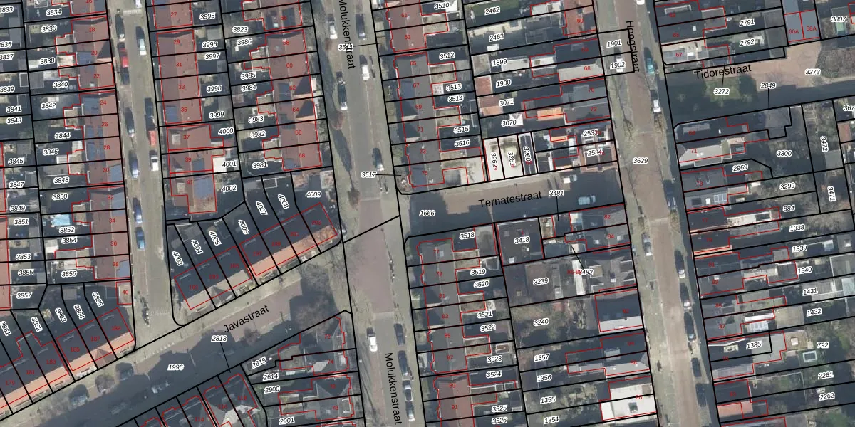 Gebruik de zoekbalk of klik op een perceel om informatie over het perceel te bekijken.