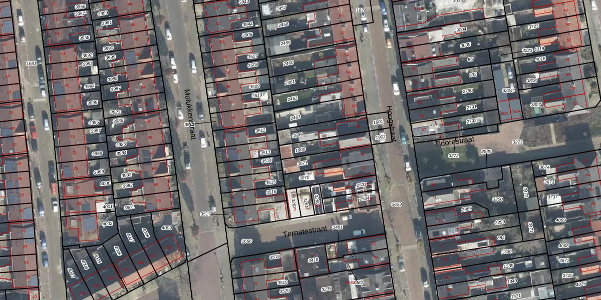 Gebruik de zoekbalk of klik op een perceel om informatie over het perceel te bekijken.
