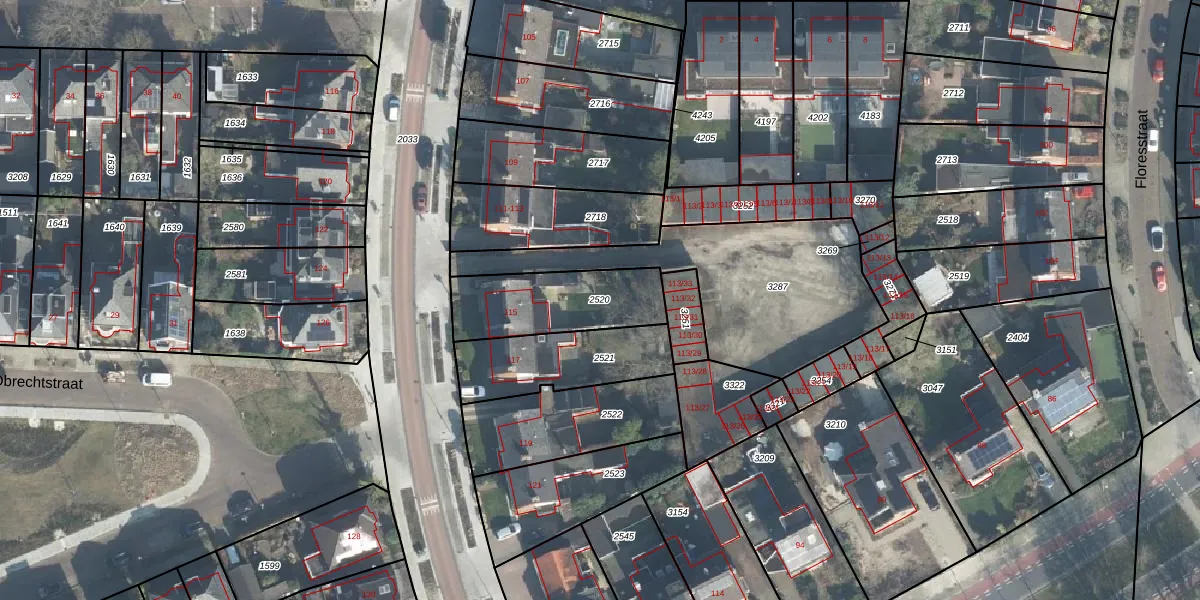 Gebruik de zoekbalk of klik op een perceel om informatie over het perceel te bekijken.