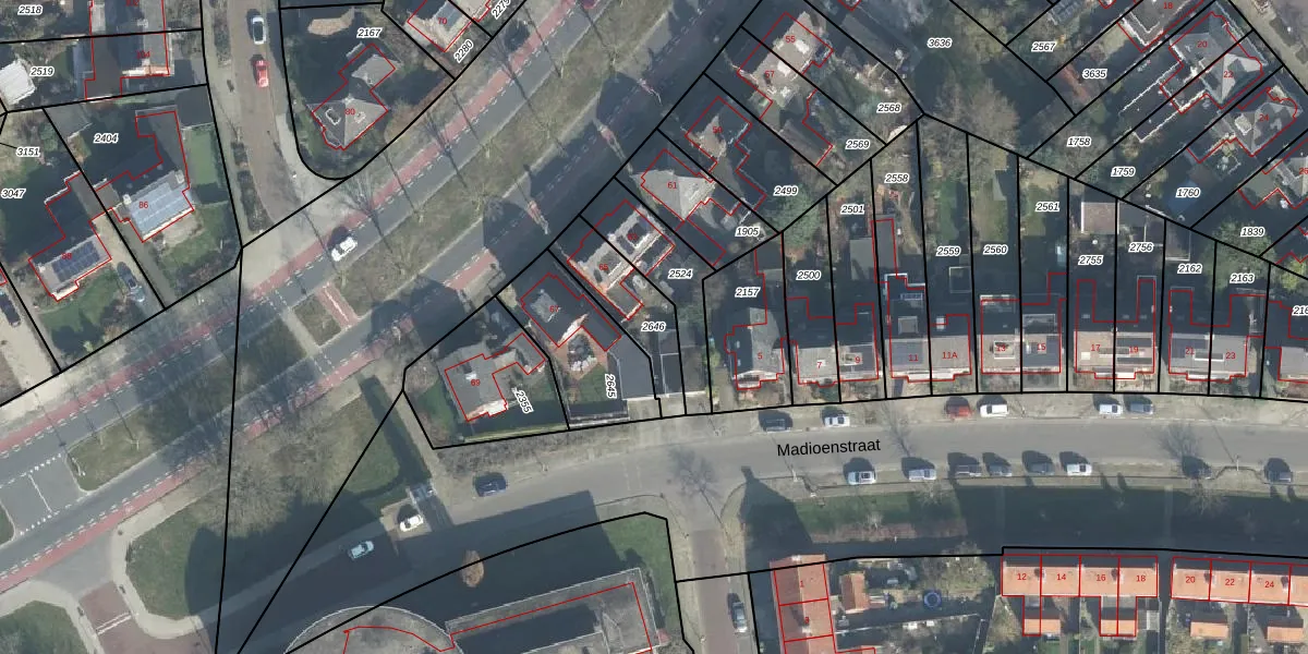 Gebruik de zoekbalk of klik op een perceel om informatie over het perceel te bekijken.