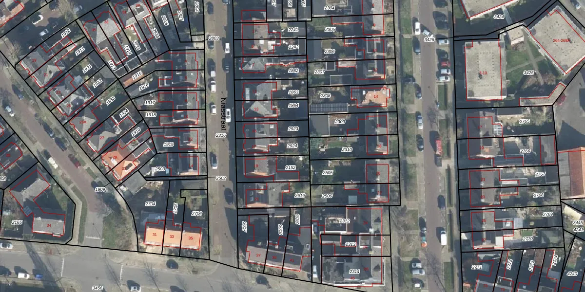 Gebruik de zoekbalk of klik op een perceel om informatie over het perceel te bekijken.
