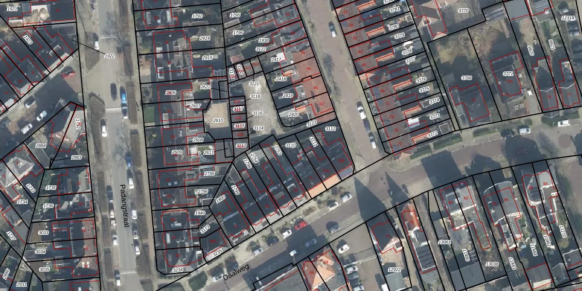 Gebruik de zoekbalk of klik op een perceel om informatie over het perceel te bekijken.