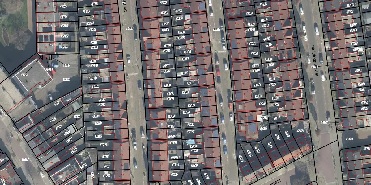 Gebruik de zoekbalk of klik op een perceel om informatie over het perceel te bekijken.