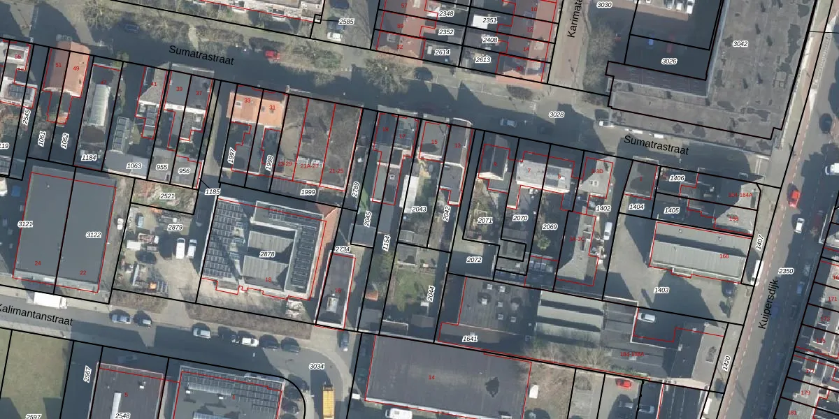 Gebruik de zoekbalk of klik op een perceel om informatie over het perceel te bekijken.