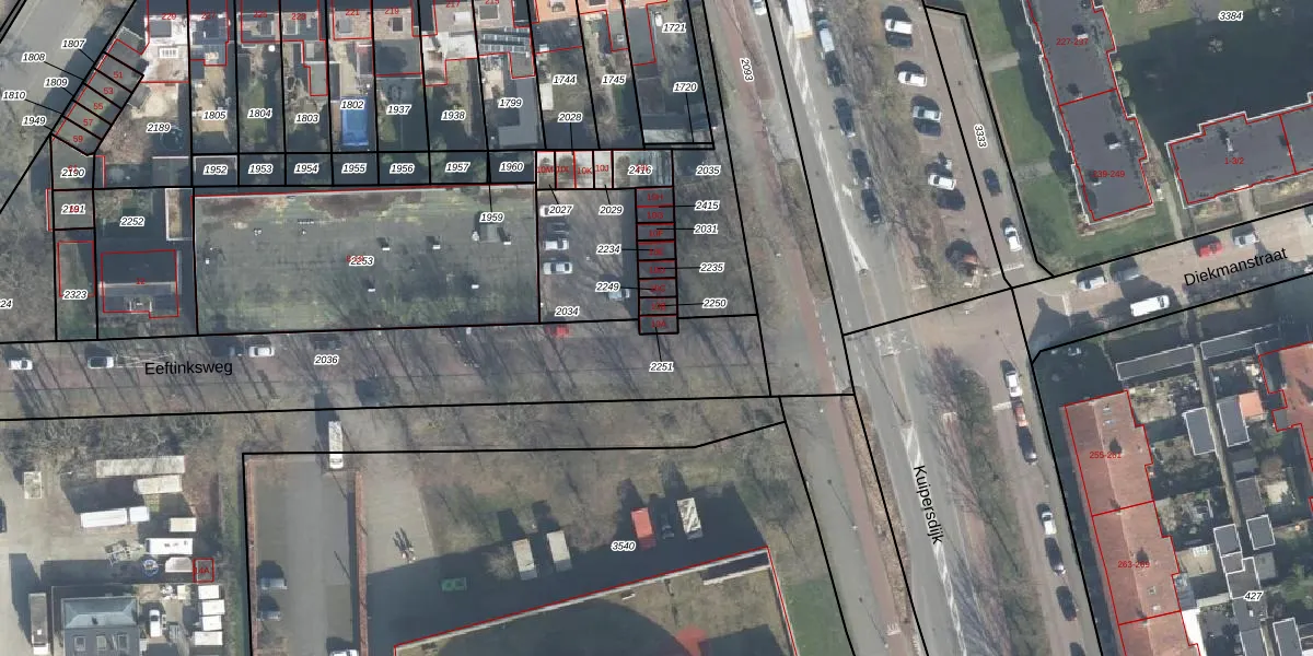 Gebruik de zoekbalk of klik op een perceel om informatie over het perceel te bekijken.