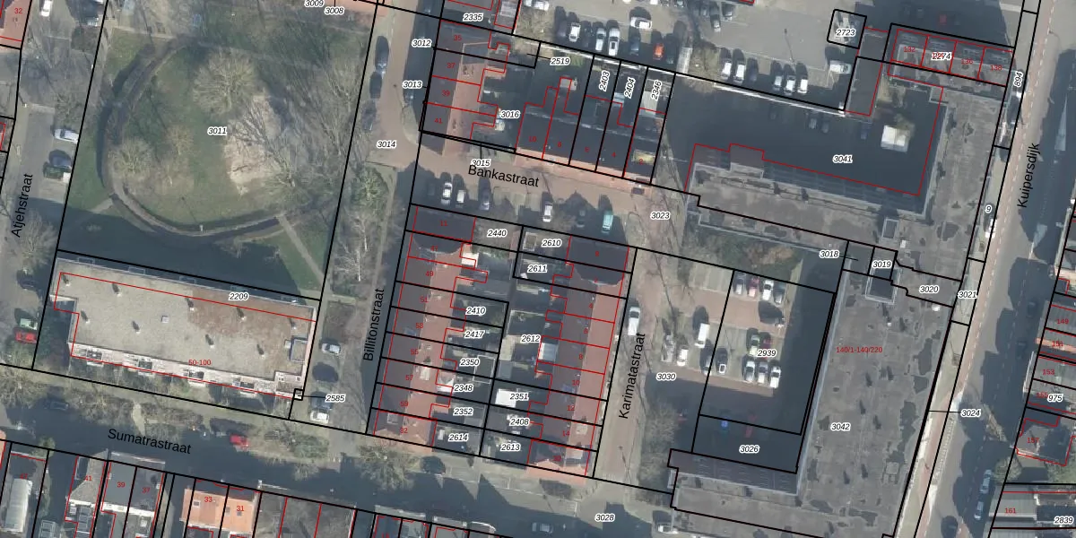 Gebruik de zoekbalk of klik op een perceel om informatie over het perceel te bekijken.