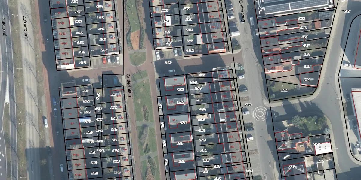 Gebruik de zoekbalk of klik op een perceel om informatie over het perceel te bekijken.