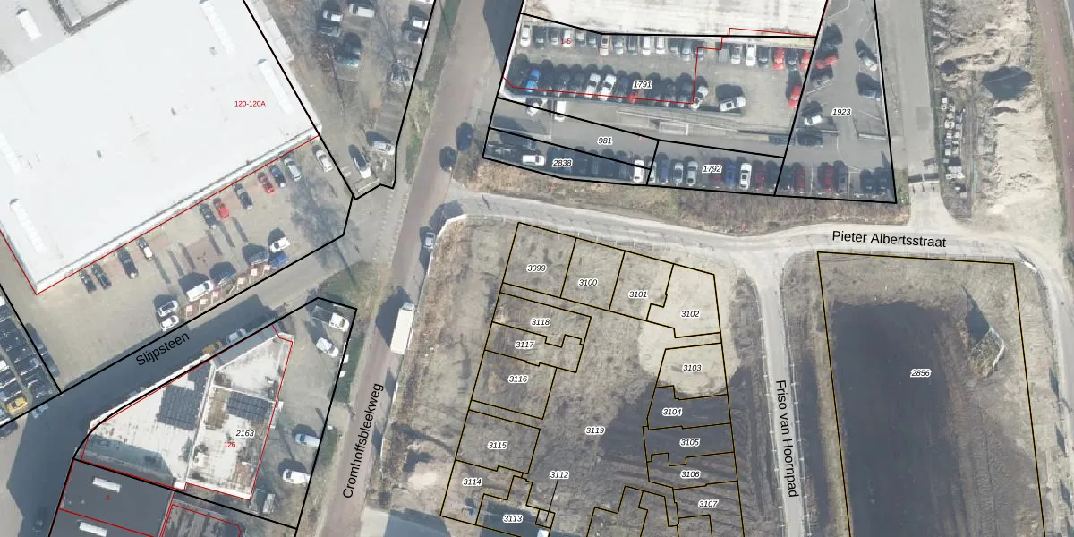 Gebruik de zoekbalk of klik op een perceel om informatie over het perceel te bekijken.