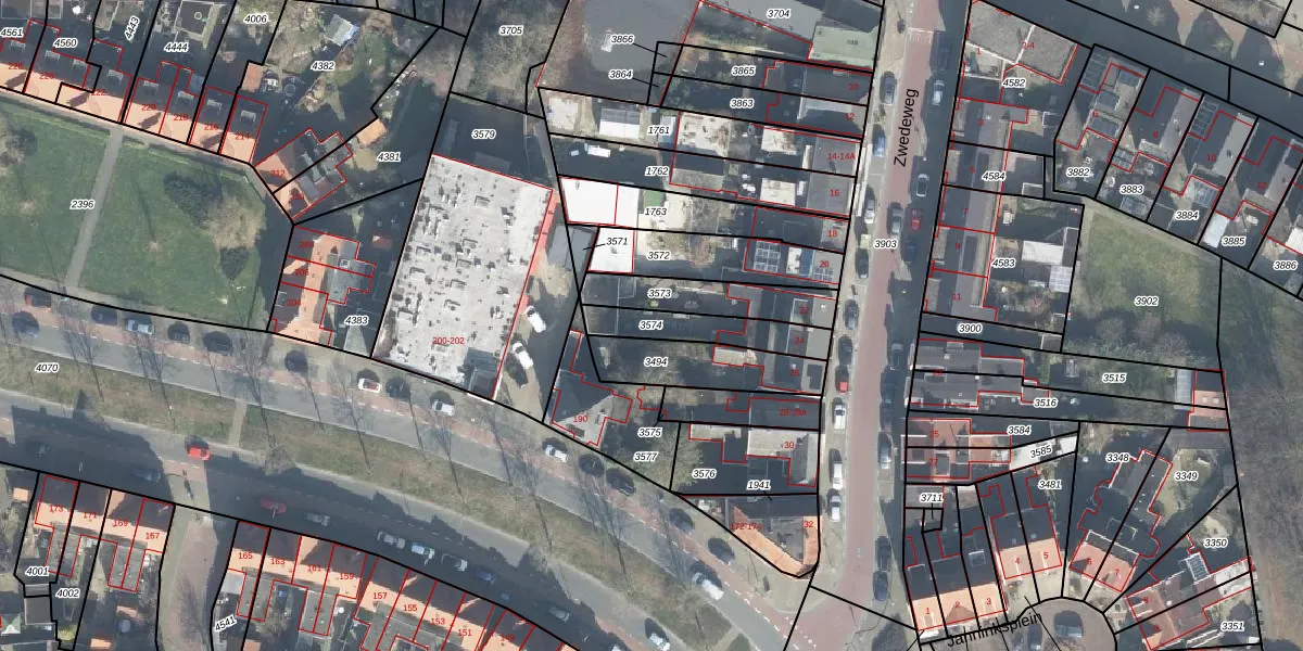 Gebruik de zoekbalk of klik op een perceel om informatie over het perceel te bekijken.