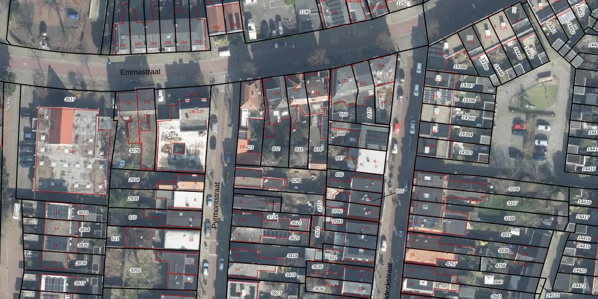 Gebruik de zoekbalk of klik op een perceel om informatie over het perceel te bekijken.