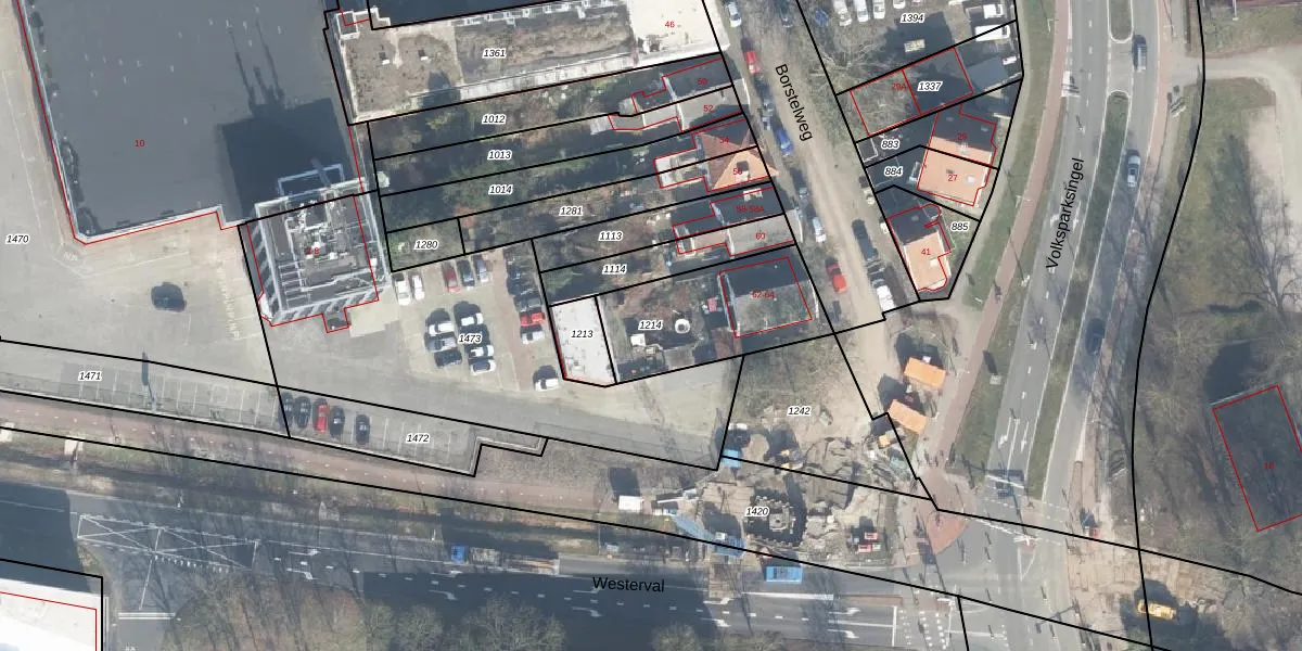 Gebruik de zoekbalk of klik op een perceel om informatie over het perceel te bekijken.