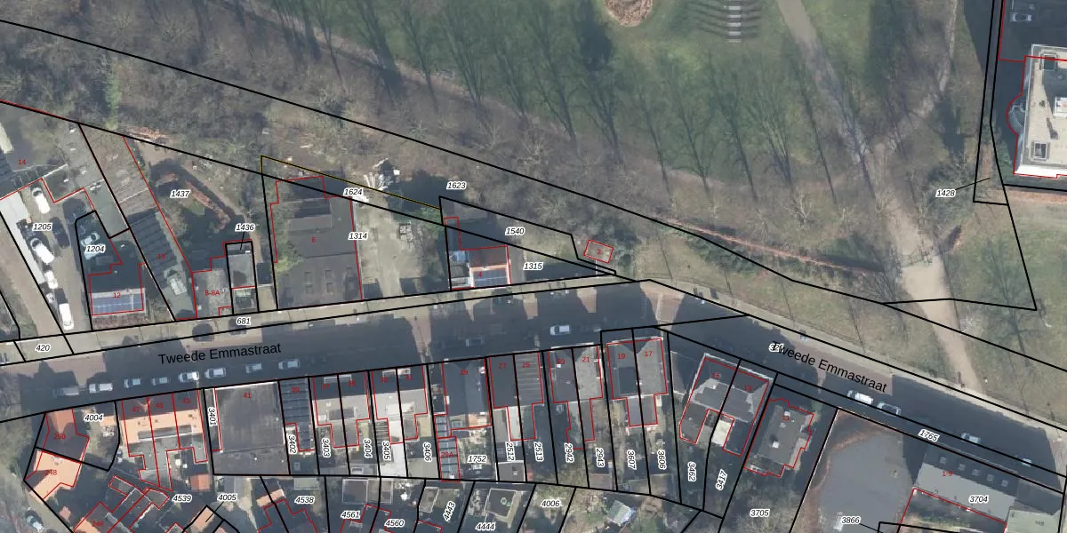 Gebruik de zoekbalk of klik op een perceel om informatie over het perceel te bekijken.