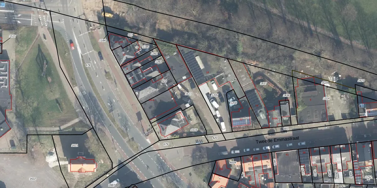 Gebruik de zoekbalk of klik op een perceel om informatie over het perceel te bekijken.