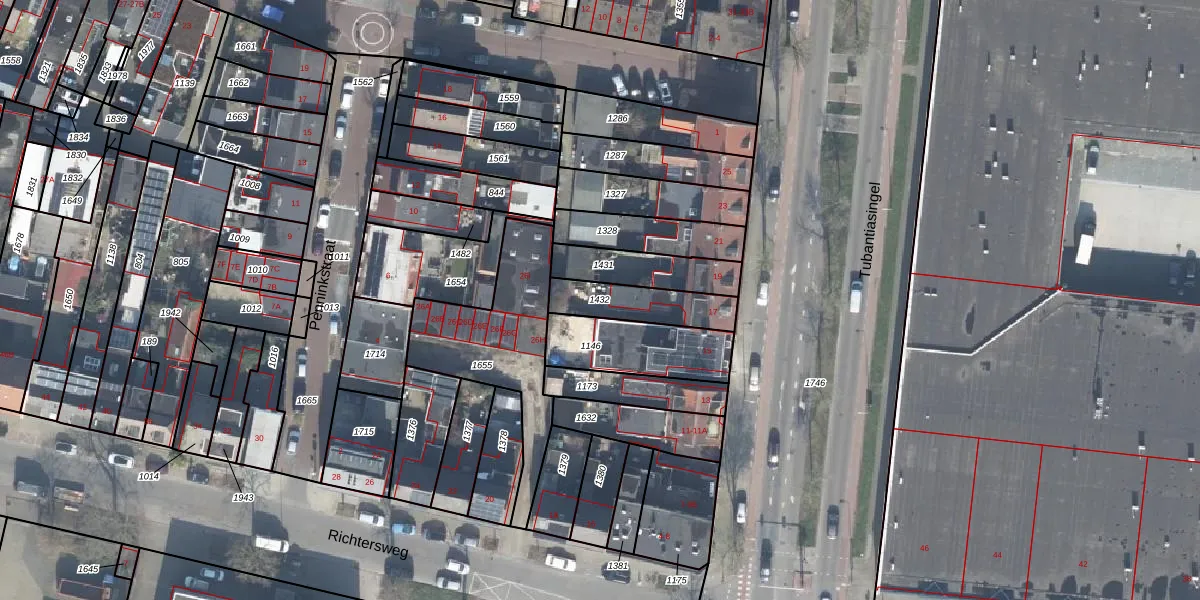 Gebruik de zoekbalk of klik op een perceel om informatie over het perceel te bekijken.