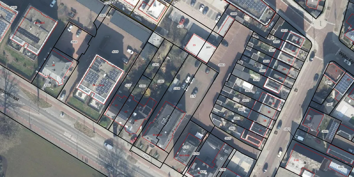 Gebruik de zoekbalk of klik op een perceel om informatie over het perceel te bekijken.