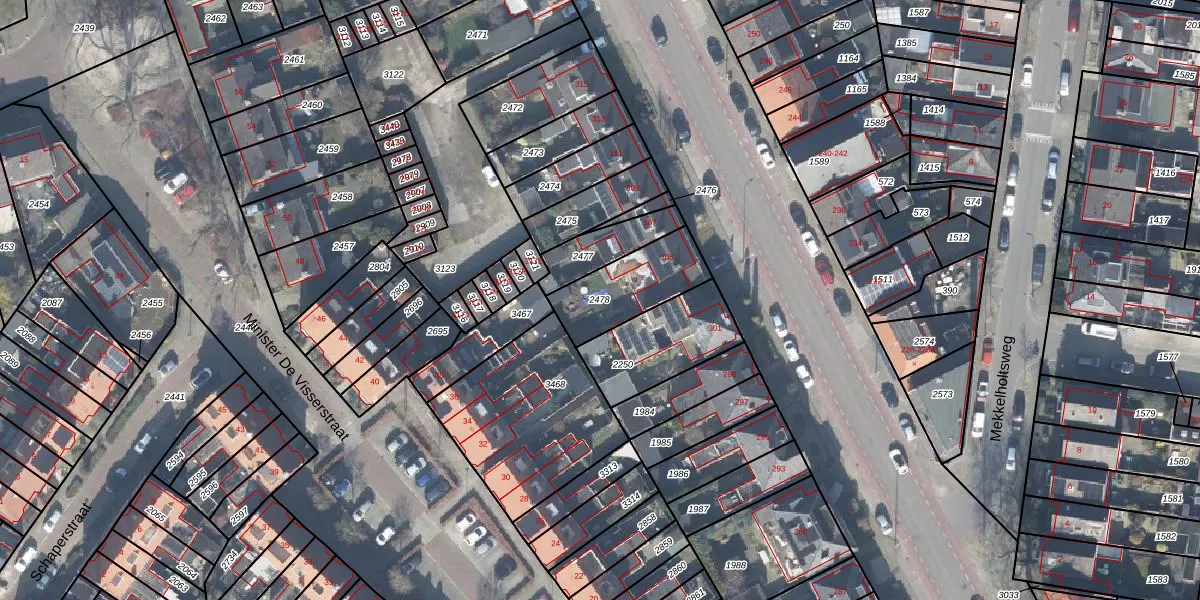 Gebruik de zoekbalk of klik op een perceel om informatie over het perceel te bekijken.