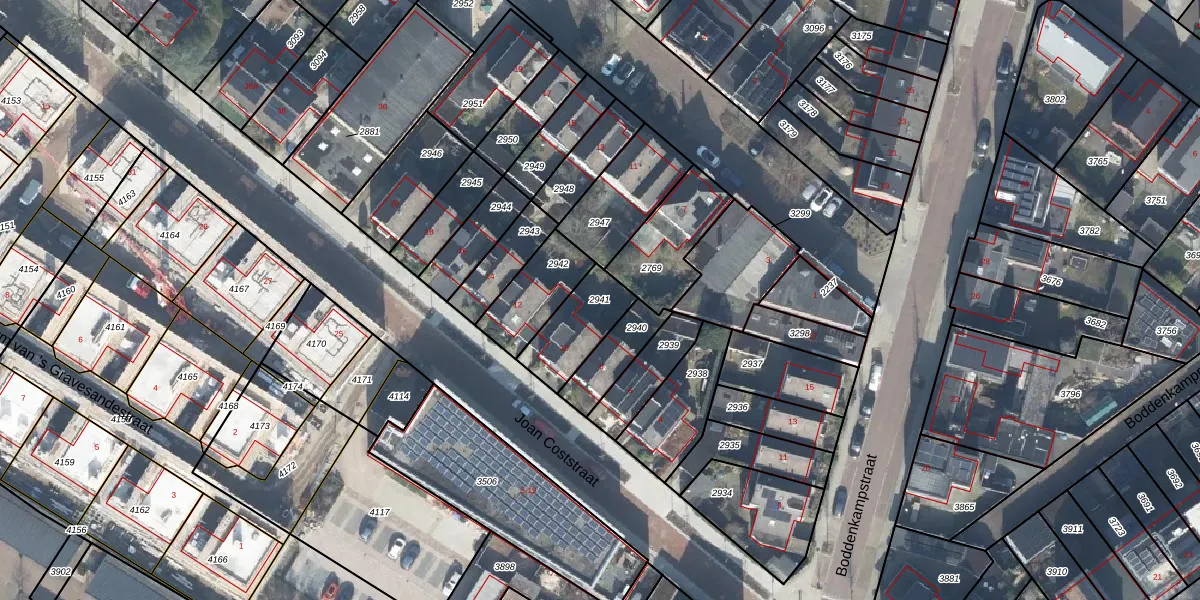 Gebruik de zoekbalk of klik op een perceel om informatie over het perceel te bekijken.