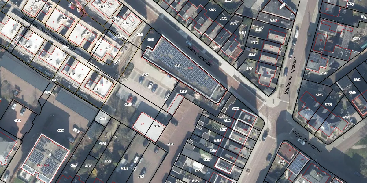 Gebruik de zoekbalk of klik op een perceel om informatie over het perceel te bekijken.