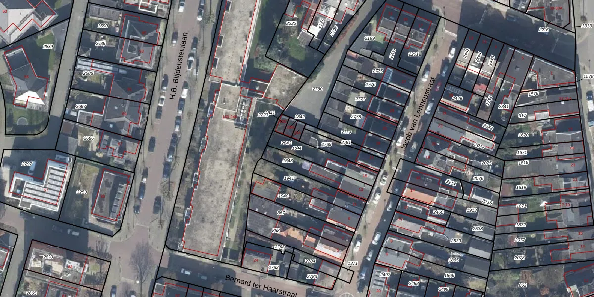 Gebruik de zoekbalk of klik op een perceel om informatie over het perceel te bekijken.