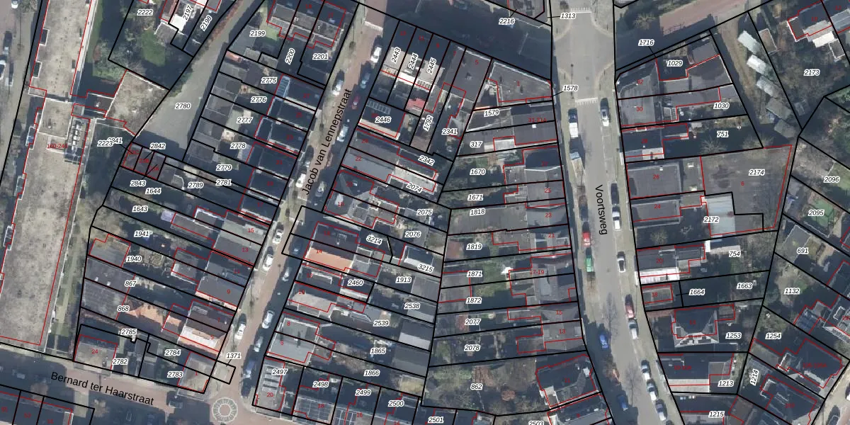 Gebruik de zoekbalk of klik op een perceel om informatie over het perceel te bekijken.