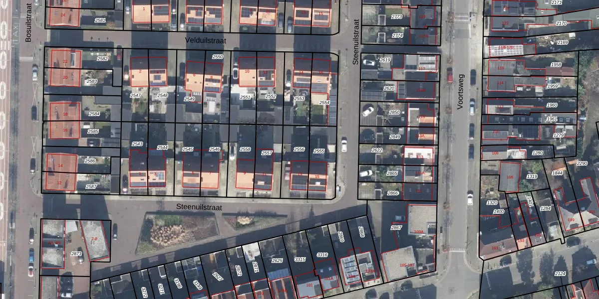 Gebruik de zoekbalk of klik op een perceel om informatie over het perceel te bekijken.