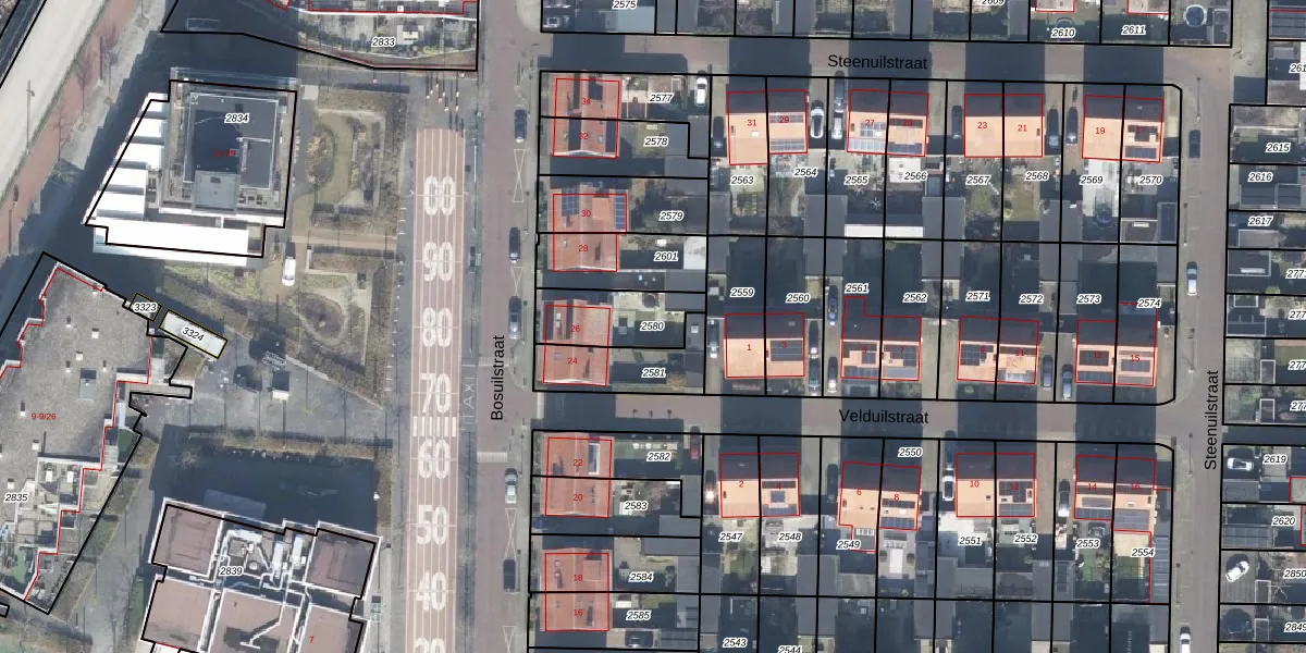 Gebruik de zoekbalk of klik op een perceel om informatie over het perceel te bekijken.