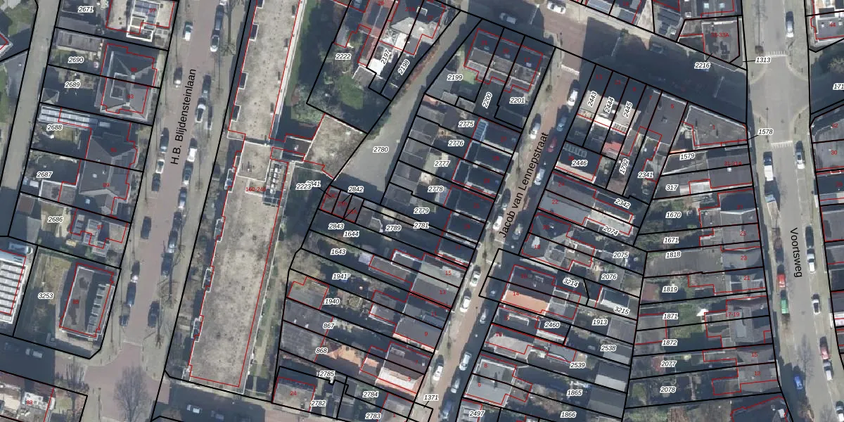Gebruik de zoekbalk of klik op een perceel om informatie over het perceel te bekijken.