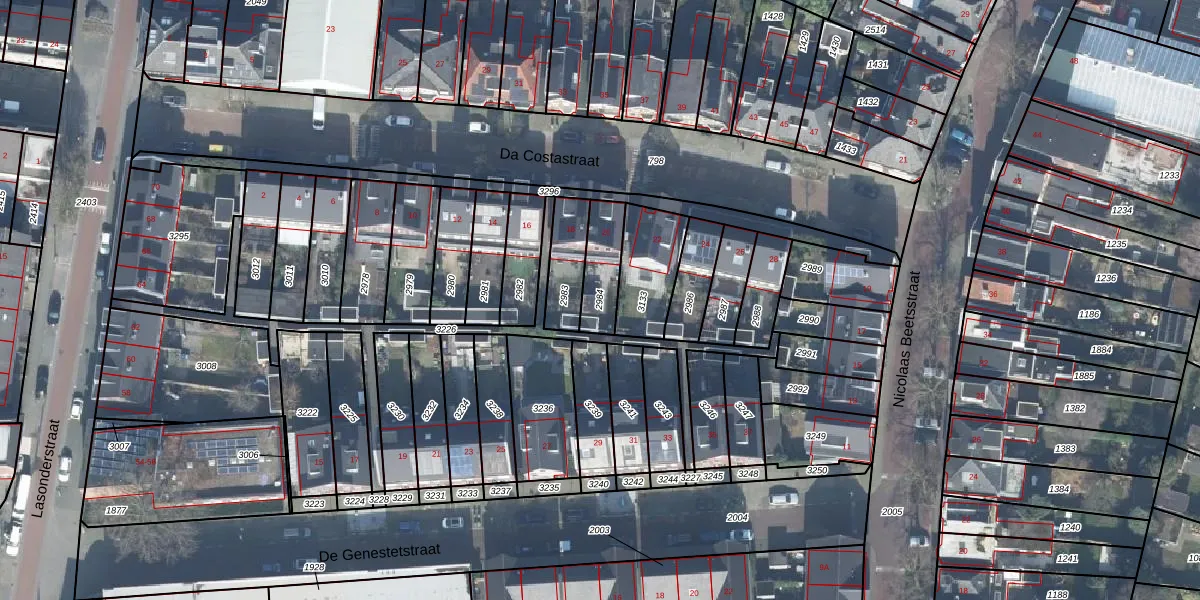 Gebruik de zoekbalk of klik op een perceel om informatie over het perceel te bekijken.