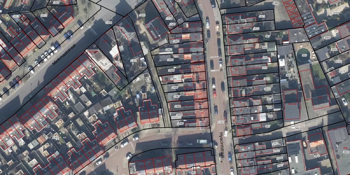 Gebruik de zoekbalk of klik op een perceel om informatie over het perceel te bekijken.