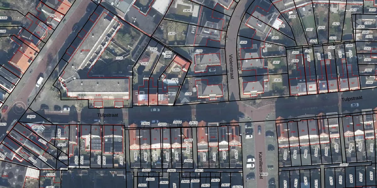 Gebruik de zoekbalk of klik op een perceel om informatie over het perceel te bekijken.