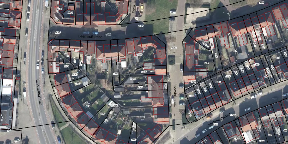 Gebruik de zoekbalk of klik op een perceel om informatie over het perceel te bekijken.