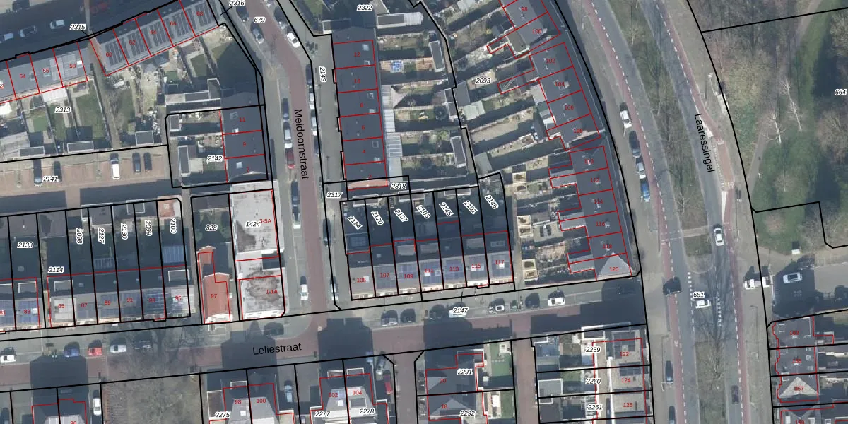 Gebruik de zoekbalk of klik op een perceel om informatie over het perceel te bekijken.