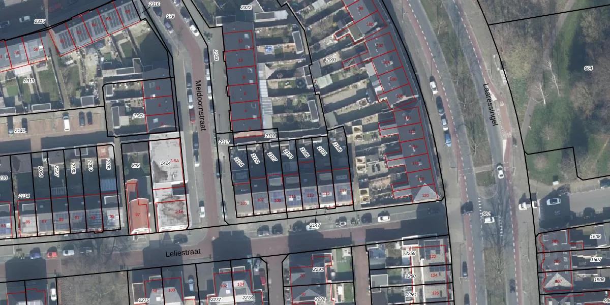 Gebruik de zoekbalk of klik op een perceel om informatie over het perceel te bekijken.