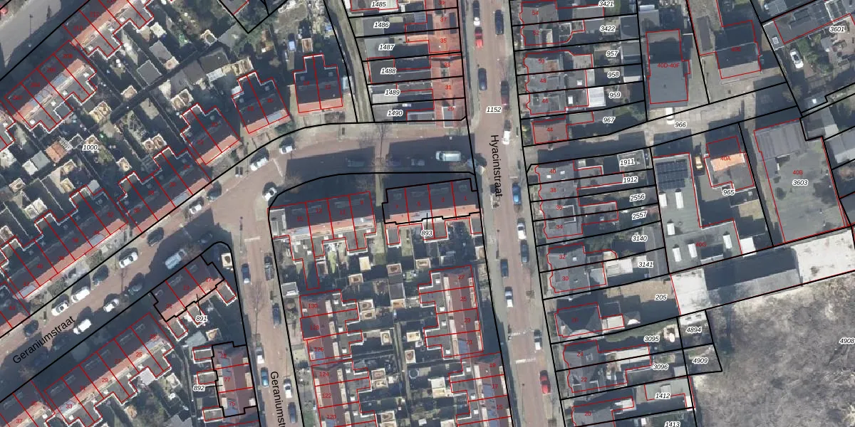 Gebruik de zoekbalk of klik op een perceel om informatie over het perceel te bekijken.