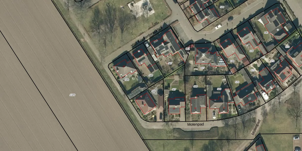 Gebruik de zoekbalk of klik op een perceel om informatie over het perceel te bekijken.